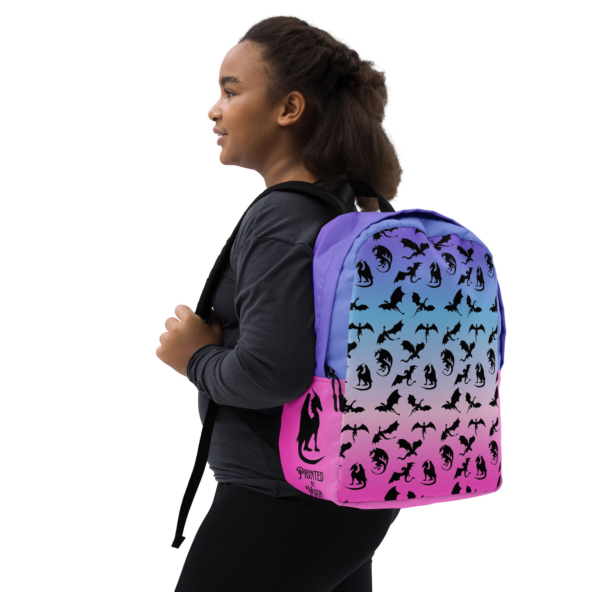 Adorned with a flurry of black dragons soaring across a magical ombré sky, this backpack isn’t just a bag—it’s a statement spell. With a bold fade from twilight violet to potion pink, this pack channels both fantasy flair and everyday function.